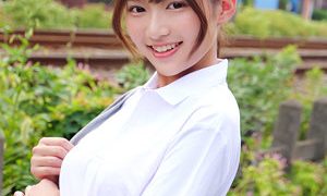 【みくちゃん】笑顔が素敵な色白女子みく!勝手に触られても爆笑する性格イイ子と制服剥がし即ハメ中出しセックス!